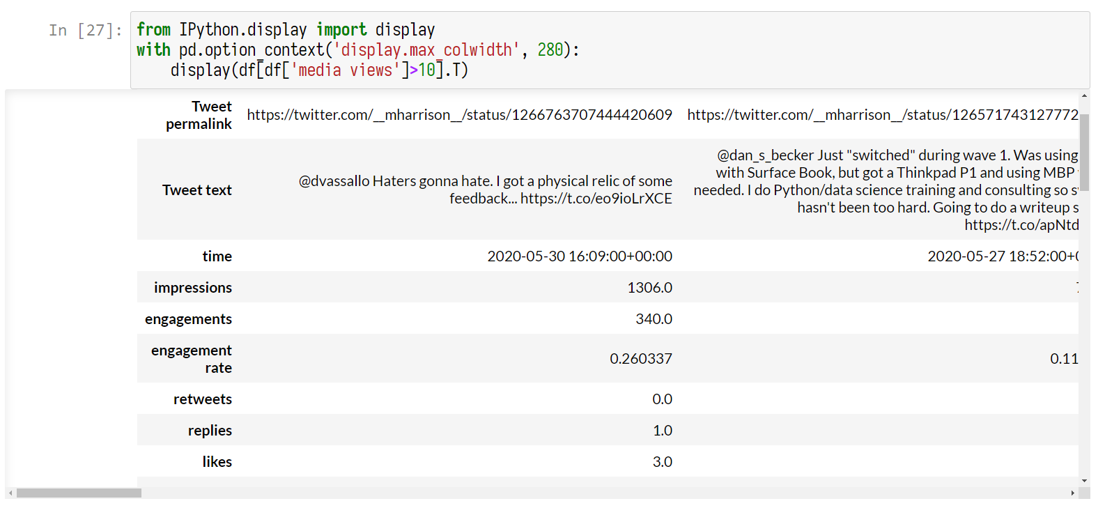 I've just about finished the "Applied Pandas Twitter Analysis" online course, by